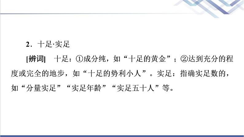 [辨词] 十足:①成分纯,如“十足的黄金”;②达到充分的程度或完全的地步,如“十足的势利小人”。实足:指确实足数的,如“分量实足”“实足年龄”“实足五十人”等。