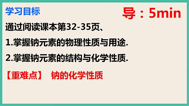 通过阅读课本第32-35页、1.掌握钠元素的物理性质与用途.2.掌握钠元素的结构与化学性质.