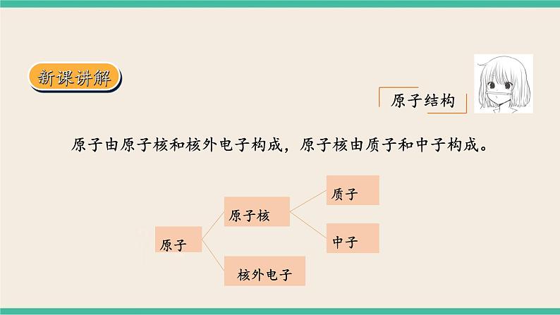原子由原子核和核外电子构成,原子核由质子和中子构成。