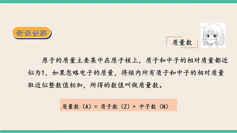 质量数(A)= 质子数(Z)+ 中子数(N)