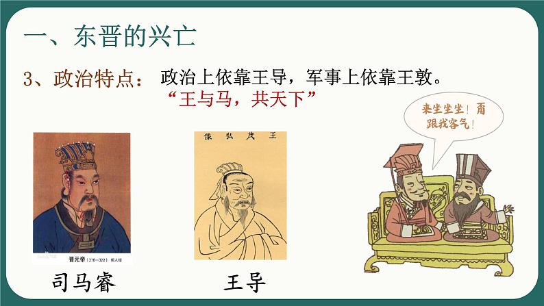 政治上依靠王导,军事上依靠王敦。“王与马,共天下”