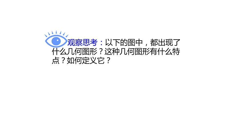 观察思考:以下的图中,都出现了什么几何图形?这种几何图形有什么特点?如何定义它?
