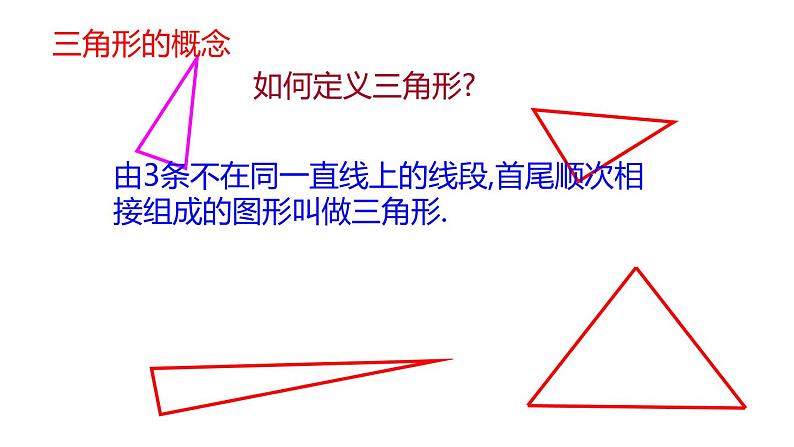 由3条不在同一直线上的线段,首尾顺次相接组成的图形叫做三角形.