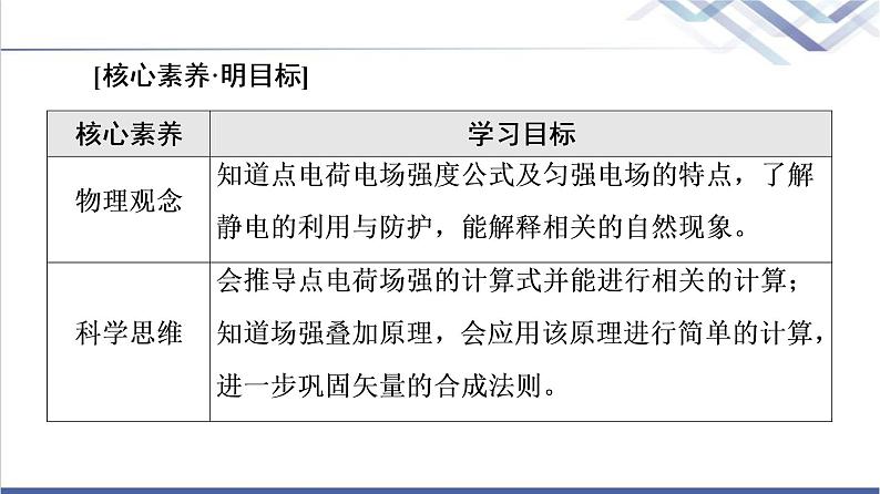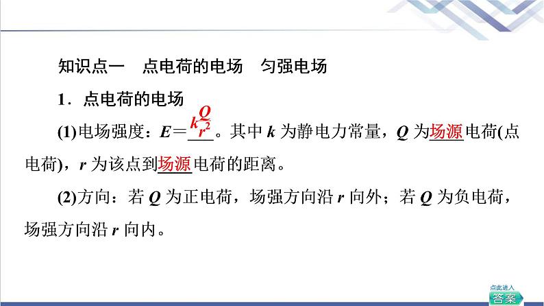 鲁科版 (2019)必修 第三册第1章 静电力与电场强度第4节 点电荷的电场 匀强电场多媒体教学课件ppt