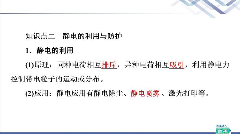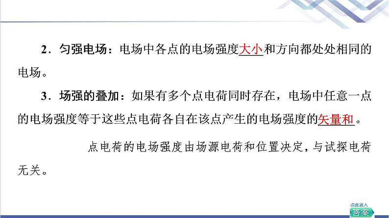 这是一份鲁科版 (2019)必修 第三册第1章 静电力与电场强度第4节 点电荷的电场 匀强电场多媒体教学课件ppt,文件包含鲁科版高中物理必修第三册第1章第4节点电荷的电场匀强电场第5节静电的利用与防护课件ppt、鲁科版高中物理必修第三册第1章第4节点电荷的电场匀强电场第5节静电的利用与防护学案doc、鲁科版高中物理必修第三册课后素养落实4点电荷的电场匀强电场静电的利用与防护含答案doc等3份课件配套教学资源,其中PPT共60页, 欢迎下载使用。