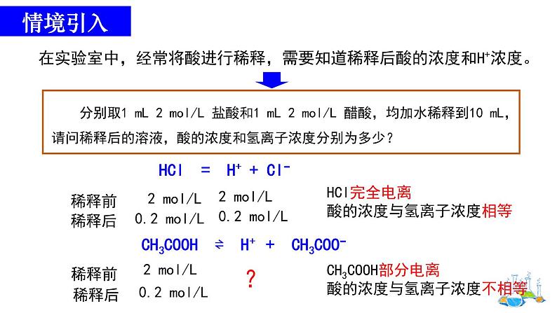 在实验室中,经常将酸进行稀释,需要知道稀释后酸的浓度和H+浓度。