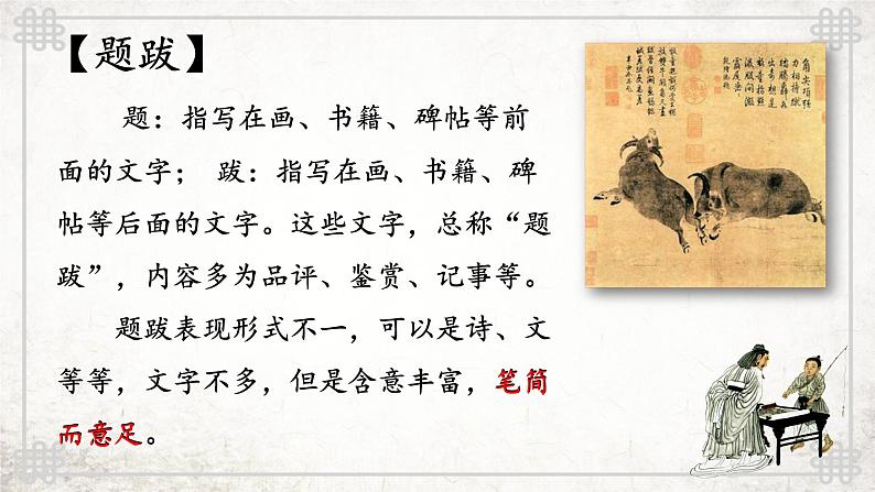 今天天气真好!我赶着牛出发啦!刚走到半路,就看见村里的杜处士正在晒他的书画宝贝…… 我姓杜,人称杜处士,虽然读了不少书,就是不愿意做官,最大的爱好就是收藏书画…… 我是苏轼,听说四川有个杜处士,非常非常喜好书画……