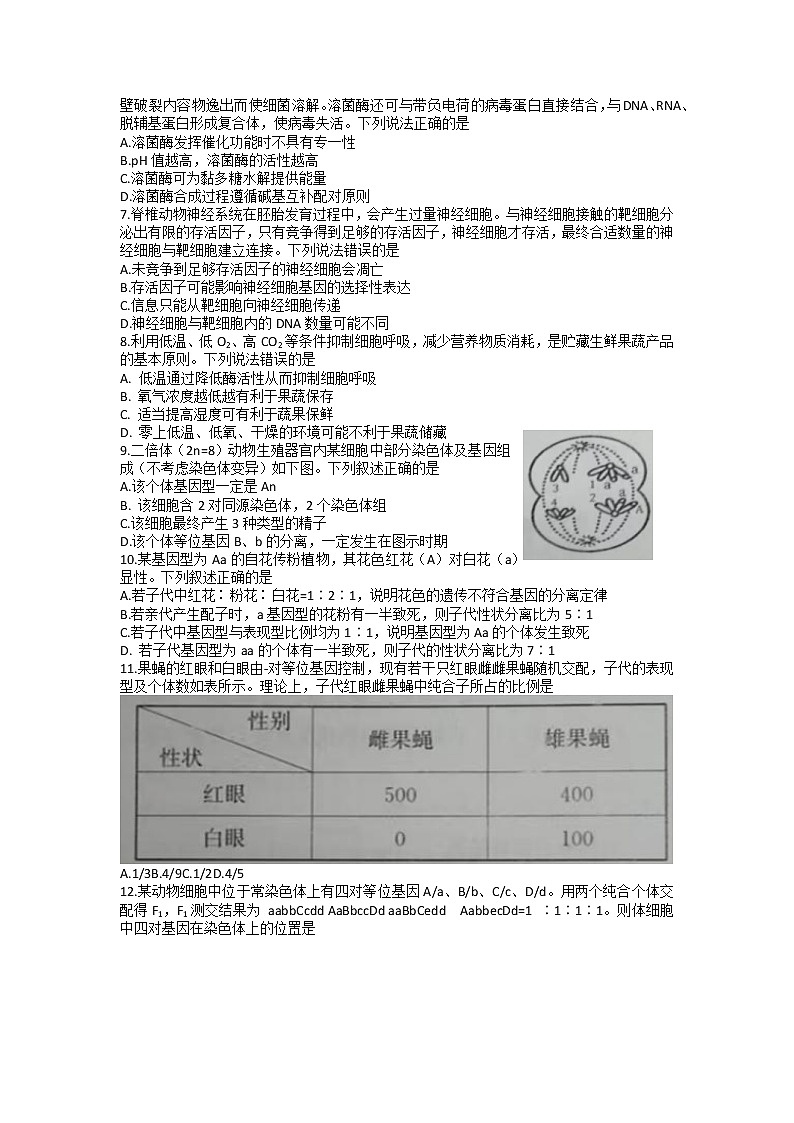 7.脊椎动物神经系统在胚胎发育过程中,会产生过量神经细胞。与神经细胞接触的靶细胞分泌出有限的存活因子,只有竞争得到足够的存活因子,神经细胞才存活,最终合适数量的神经细胞与靶细胞建立连接。下列说法错误的是