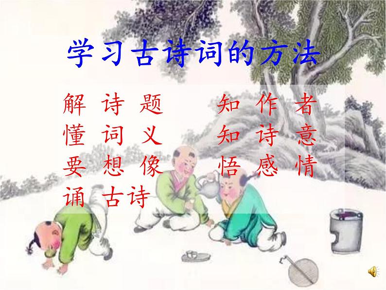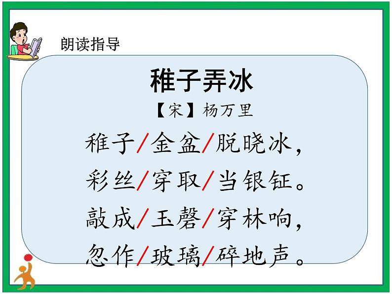 2021学年第一单元1 古诗三首稚子弄冰图文ppt课件: 这是一份2021学年第一单元1 古诗三首稚子弄冰图文ppt课件,共16页。PPT课件主要包含了教学目标,稚子弄冰,了解诗题,走进作者,了解背景,忽作玻璃碎地声,玻璃碎地等内容,欢迎下载使用。