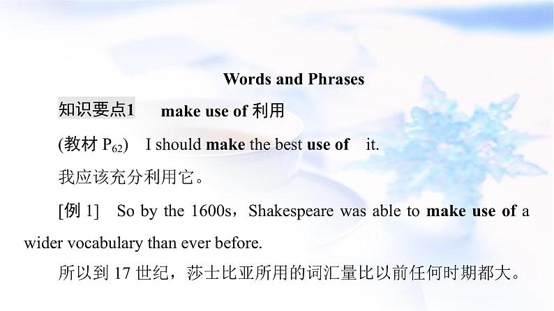 [例1] So by the 1600s,Shakespeare was able to make use of a wider vocabulary than ever before.