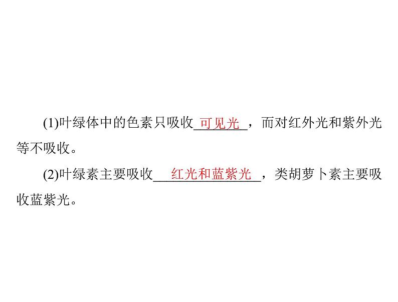 (2)叶绿素主要吸收________________,类胡萝卜素主要吸收蓝紫光。