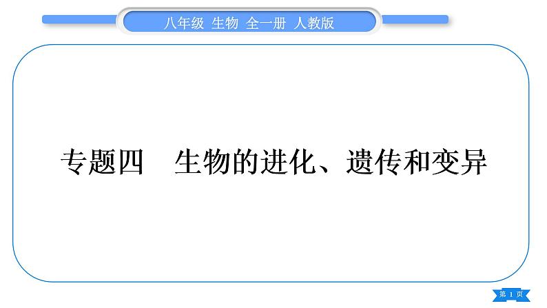 这是一份人教版八年级生物下第七单元生物圈中生命的延续和发展第三章生命起源和生物进化专题四生物的进化、遗传和变异习题课件,共12页。