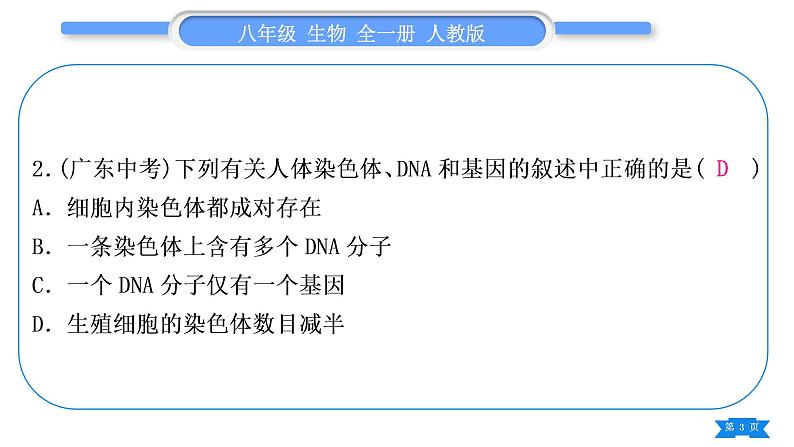 人教版八年级生物下第七单元生物圈中生命的延续和发展第三章生命起源和生物进化专题四生物的进化、遗传和变异习题课件