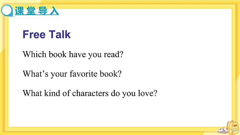 If possible,you may also ask:Do you know the main characters of these books? Which book title tells us the main characters? What do you think of it? Which book do you like best? What’s it like?
