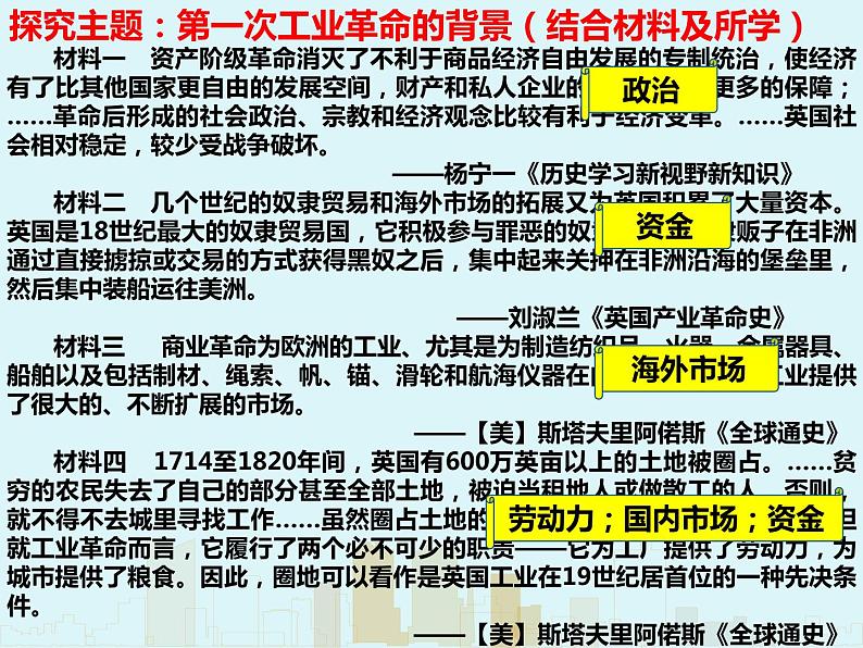 这是一份人教统编版(必修)中外历史纲要(下)第10课 影响世界的工业革命 课堂教学课件ppt,共29页。PPT课件主要包含了影响世界的工业革命,工业革命的背景,工业革命的进程,工业革命的影响,工业革命的启示等内容,欢迎下载使用。