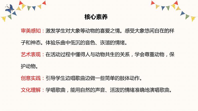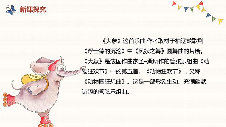 这是一份音乐一年级下册大象评优课教学课件ppt,文件包含人音版2012音乐一下42大象课件pptx、人音版2012音乐一下42大象教学设计docx、大象mp3、第一部分音乐mp3、第三部分音乐mp3、第二部分音乐mp3等6份课件配套教学资源,其中PPT共19页, 欢迎下载使用。