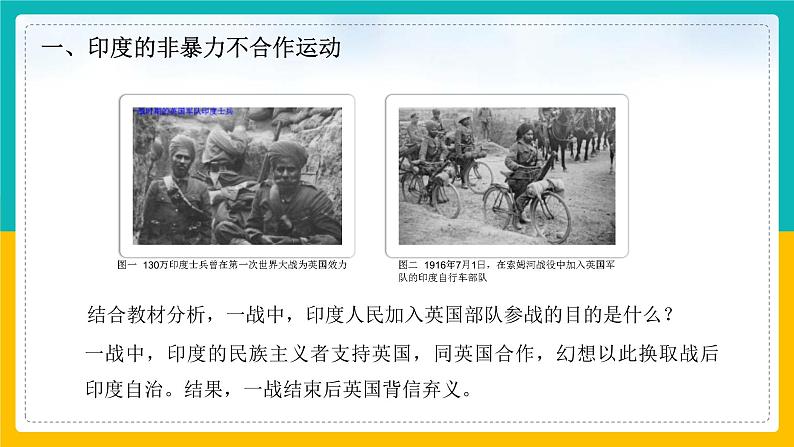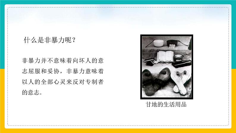 这是一份历史九年级下册第12课 亚非拉民族民主运动的高涨课前预习ppt课件,共16页。PPT课件主要包含了什么是非暴力呢,埃及的华夫脱运动,扎格鲁尔,课堂小结,板书设计等内容,欢迎下载使用。