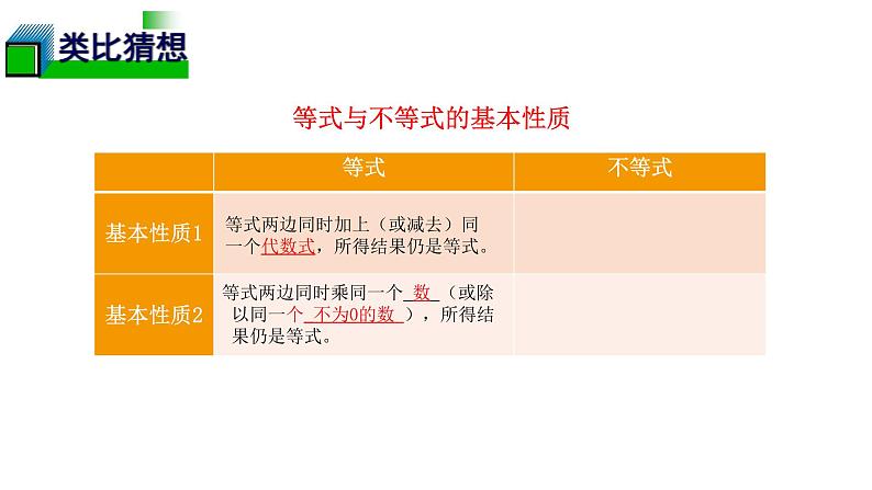 说一说等式性质与不等式性质的相同点和不同点