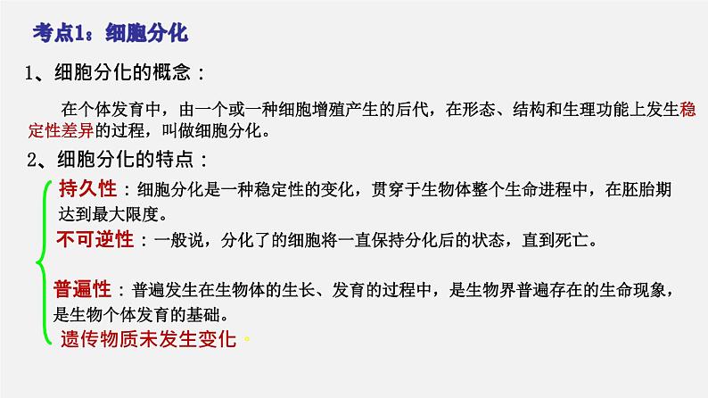 普遍性:普遍发生在生物体的生长、发育的过程中,是生物界普遍存在的生命现象,是生物个体发育的基础。