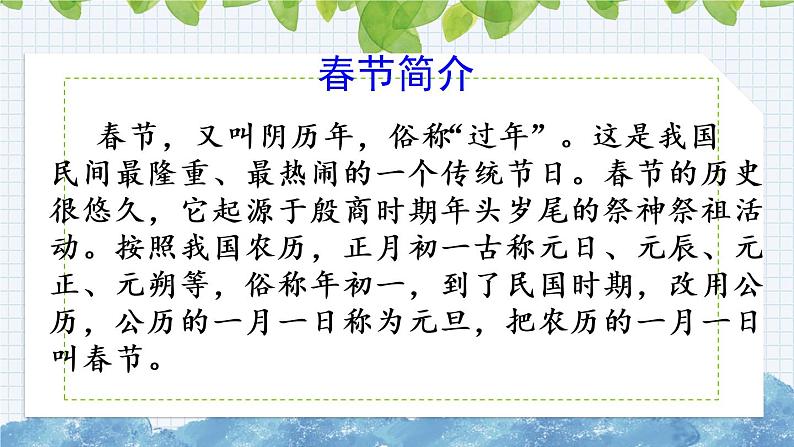 下面我们一起走进课文,看看北京的春节是怎样过的。