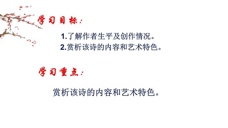 1.了解作者生平及创作情况。 2.赏析该诗的内容和艺术特色。