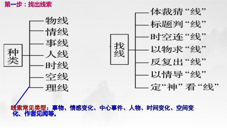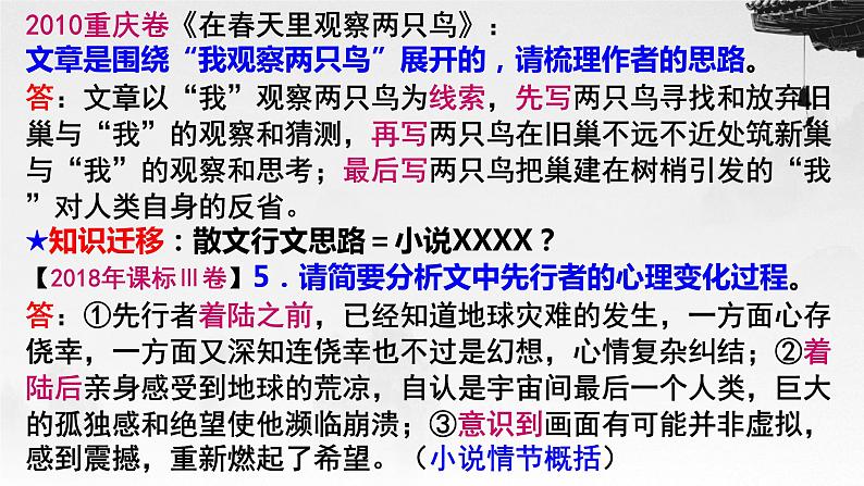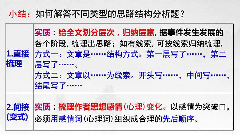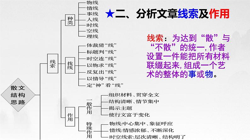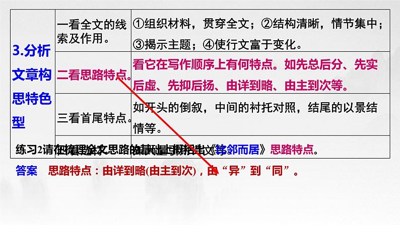 这是一份2023届高考语文复习:散文阅读复习之结构谋篇课件,共30页。PPT课件主要包含了第二步指出线索作用,有术语但没分析,分析句段作用,分析标题作用等内容,欢迎下载使用。