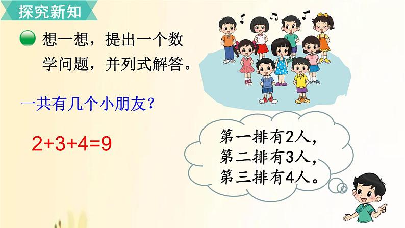 这是一份小学数学北师大版一年级上册乘车说课课件ppt,共12页。PPT课件主要包含了车上有7人,+35人,+27人,原有2人,+前门3人,+后门2人,+3+2,前门3人,+原有2人,车上有3人等内容,欢迎下载使用。