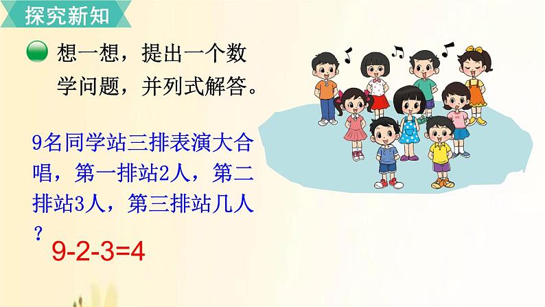 9名同学站三排表演大合唱,第一排站2人,第二排站3人,第三排站几人?