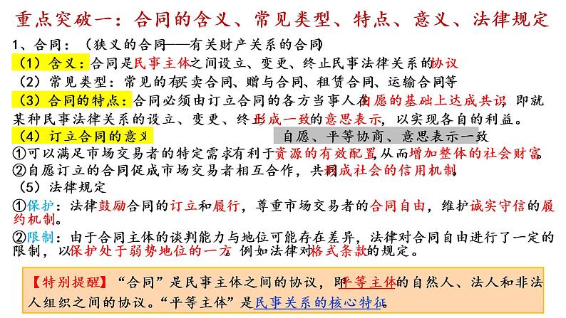 重点突破一:合同的含义、常见类型、特点、意义、法律规定
