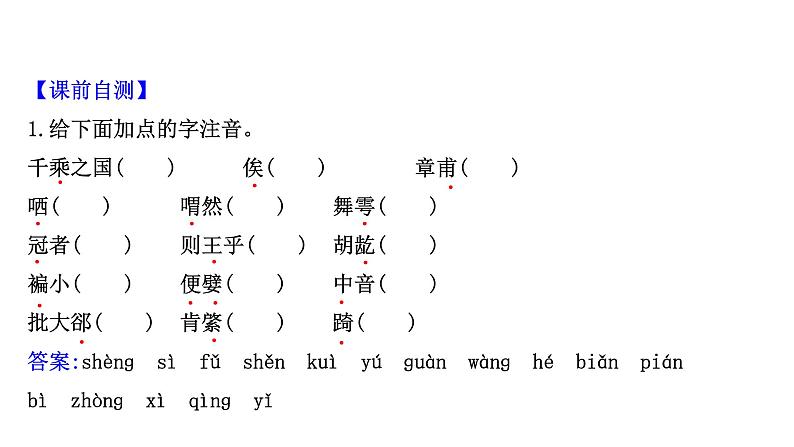 高中语文人教统编版必修 下册第一单元1 (子路、曾皙、冉有、公西华侍坐 * 齐桓晋文之事 庖丁解牛)1.1 子路、曾皙、冉有、公西华侍坐课前预习课件ppt:
