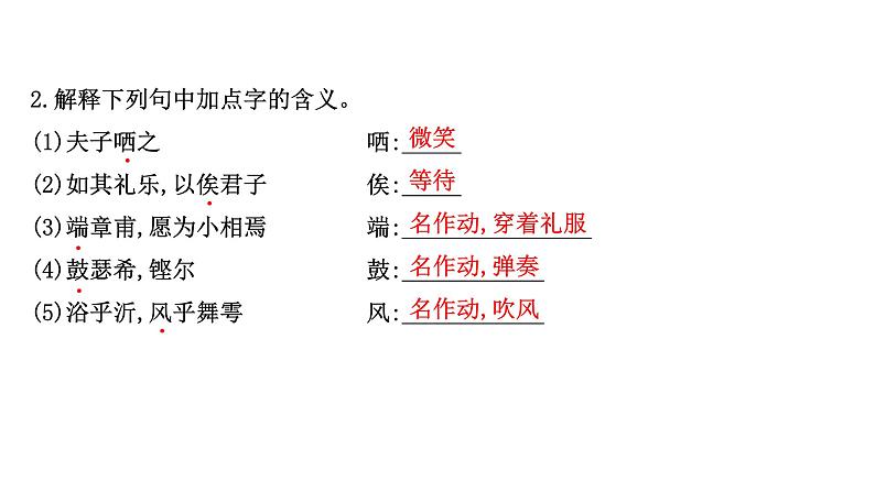 这是一份高中人教统编版1.1 子路、曾皙、冉有、公西华侍坐教学ppt课件,共60页。PPT课件主要包含了课前自主学习,名作动穿着礼服,名作动弹奏,名作动吹风,推广到,名作状每年,形作名有厚度的刀刃,文本研读梳理,介词比,介词在等内容,欢迎下载使用。