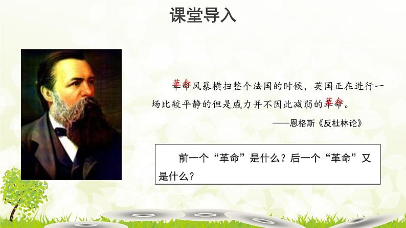 革命风暴横扫整个法国的时候,英国正在进行一场比较平静的但是威力并不因此减弱的革命。 ——恩格斯《反杜林论》