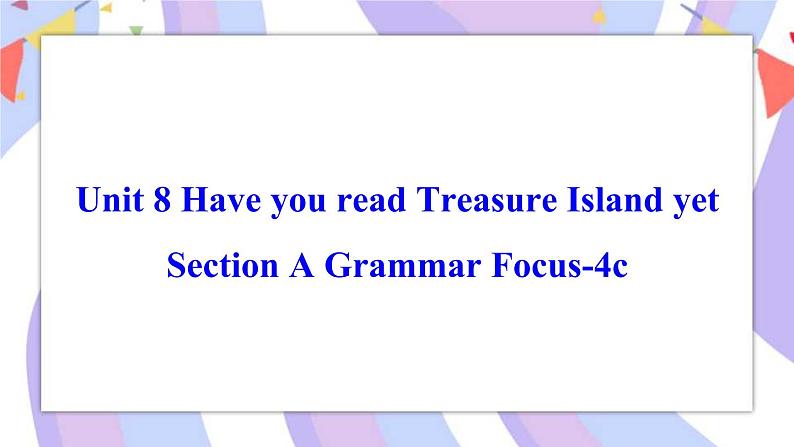 初中英语人教新目标 (Go for it) 版八年级下册Unit 8 Have you read Treasure Island yet?Section A完美版ppt课件: 这是一份初中英语人教新目标 (Go for it) 版八年级下册Unit 8 Have you read Treasure Island yet?Section A完美版ppt课件,共32页。PPT课件主要包含了Objectives,活学活用,a ,b ,c ,Pair Work,Exercises,Ⅲ翻译下列句子,中考链接等内容,欢迎下载使用。
