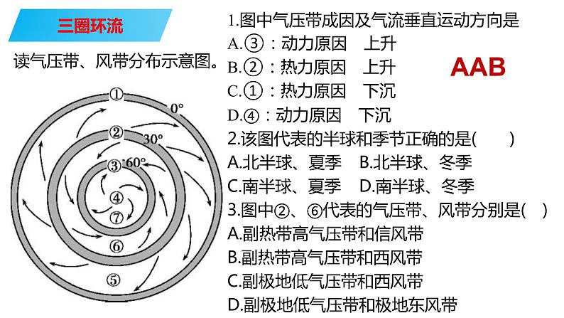 这是一份086气压带与风带2023届高三地理一轮总复习第五部分自然地理之大气课件PPT,共41页。PPT课件主要包含了AAB,热带辐合带,BCA等内容,欢迎下载使用。