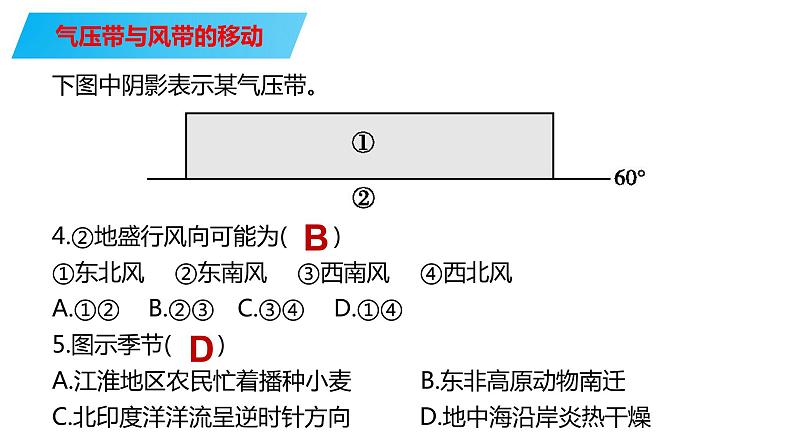 4.②地盛行风向可能为( )①东北风 ②东南风 ③西南风 ④西北风A.①② B.②③ C.③④ D.①④5.图示季节( )A.江淮地区农民忙着播种小麦 B.东非高原动物南迁C.北印度洋洋流呈逆时针方向 D.地中海沿岸炎热干燥