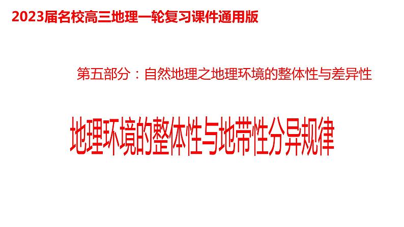 100地理环境的整体性与地带性分异2023届高三地理一轮总复习第五部分自然地理之地理环境整体性与差异性课件PPT