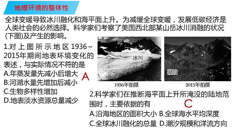 这是一份中图版 (2019)选择性必修1 自然地理基础第一节 自然地理环境的整体性示范课课件ppt,共34页。