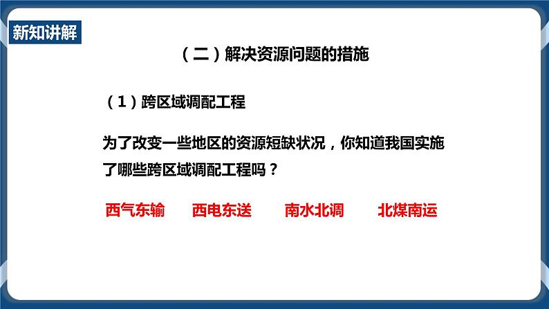 初中历史与社会人教版 (人文地理)下册第二框 应对我国的资源问题课文配套ppt课件: 这是一份初中历史与社会人教版 (人文地理)下册第二框 应对我国的资源问题课文配套ppt课件,共33页。PPT课件主要包含了分布不均衡,分布很不均衡,西电东送,北煤南运,开发新能源,开发太阳能,开发风能,开发核能,统筹资源与发展等内容,欢迎下载使用。