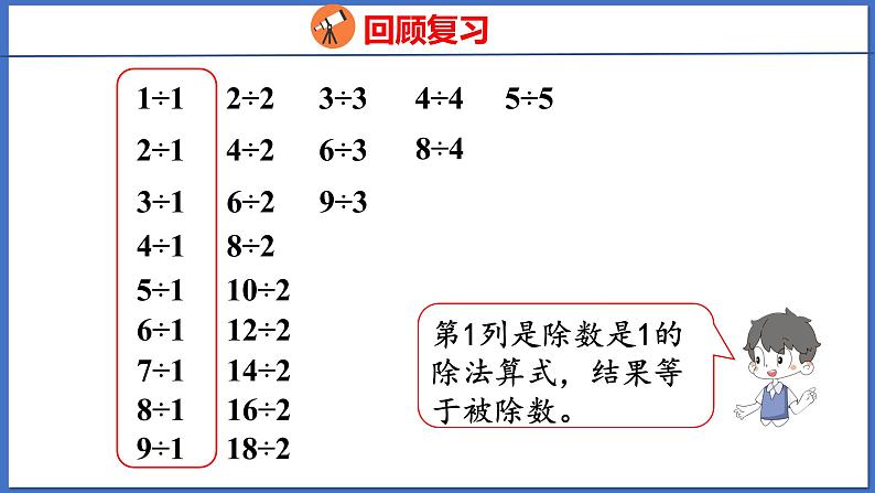 第1列是除数是1的除法算式,结果等于被除数。