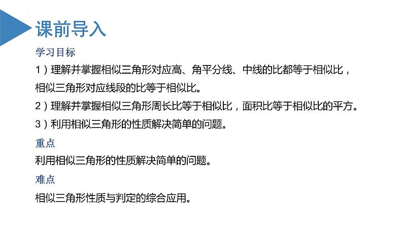 人教版九年级下册27.2.2 相似三角形的性质备课课件ppt