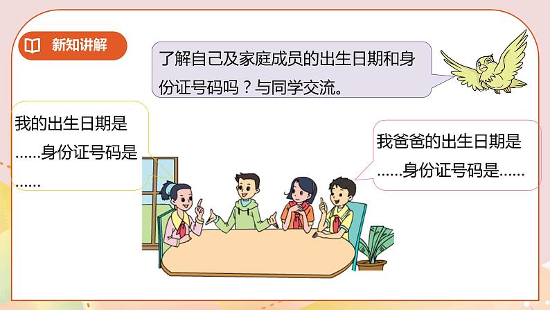了解自己及家庭成员的出生日期和身份证号码吗?与同学交流。