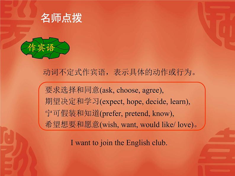 动词不定式作宾语,表示具体的动作或行为。