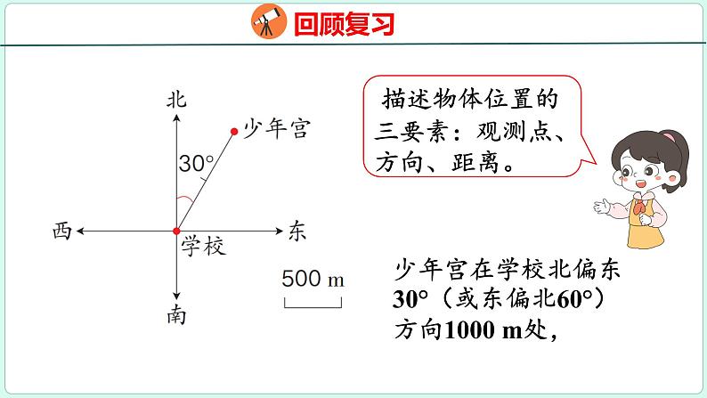 少年宫在学校北偏东30°(或东偏北60°)方向1000 m处,