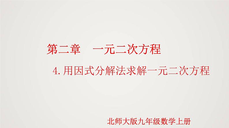 初中数学北师大版九年级上册4 用因式分解法求解一元二次方程备课课件ppt