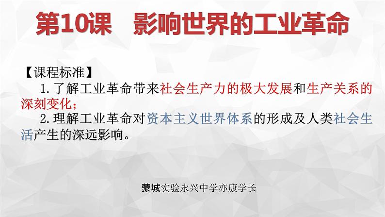 历史(必修)中外历史纲要(下)第10课 影响世界的工业革命 课文内容ppt课件