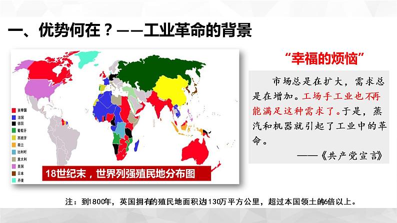 这是一份历史(必修)中外历史纲要(下)第五单元 工业革命与马克思主义的诞生第10课 影响世界的工业革命 教学课件ppt,共23页。PPT课件主要包含了经济基础,上层建筑,②煤矿能源丰富等内容,欢迎下载使用。