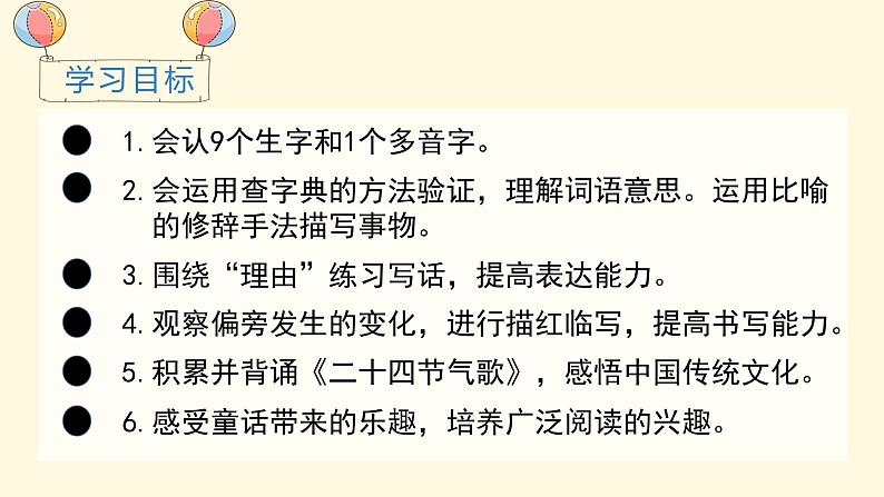 5.积累并背诵《二十四节气歌》,感悟中国传统文化。