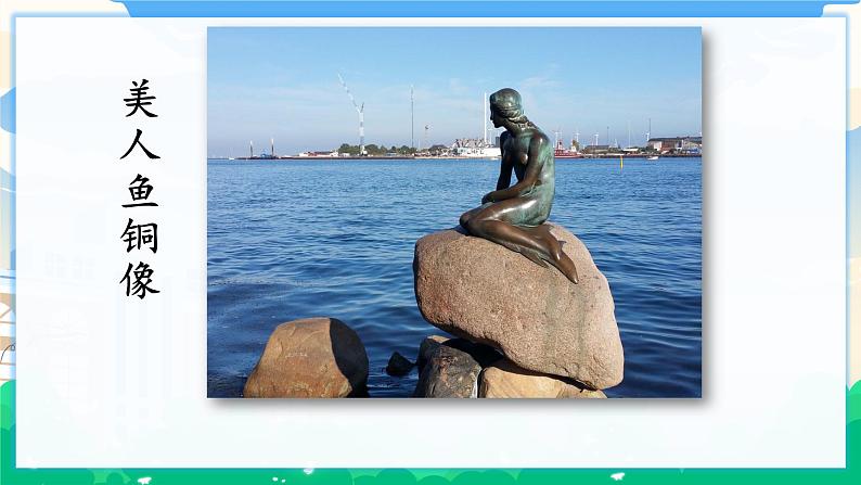 ②师引导:在丹麦首都哥本哈根入海口处的岩石上,有一座铜像,一个坐在一块石头上的女孩,若有所思地望着大海,她没有腿,只有一条鱼尾,她就是海的女儿。丹麦人民就是以这种方式来表达对安徒生的崇敬。说起安徒生,同学们肯定比我还了解,请你们说一说有关他的资料吧!