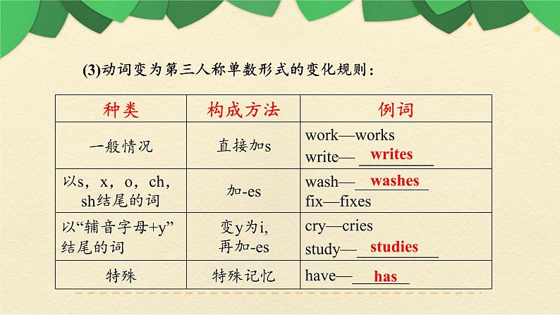 这是一份九年级英语(人教新目标)全一册 时态和语态期末专项 复习课件,共60页。PPT课件主要包含了动词时态,writes ,washes ,studies ,has ,making ,running ,will die ,going to ,was 等内容,欢迎下载使用。