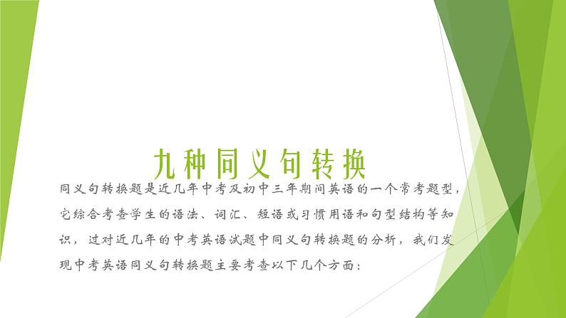这是一份中考英语(人教新目标) 九种同义句转换 复习课件,共13页。